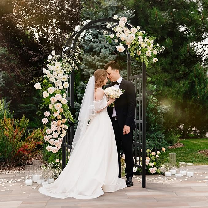 - Elegant Arch: Elegant white is suitable for weddings, classy parties and just about any occasion. Whether standing alone or covered with climbing vines and flowers, these outdoor arch add a striking focal point to your event. Adding grace and prominence to any outdoor venue with the Arbor features squared lattice side panels