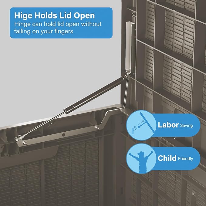 - Material: The patio outdoor storage box is made of the latest high-quality resin material, which makes this patio deck storage box waterproof, UV-resistant, anti-fading, and anti-bending protection, suitable for long-term outdoor use.